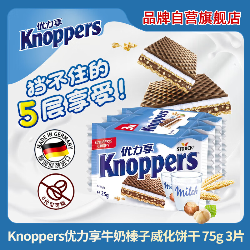 Knoppers是德國著名的餅干品牌,成立于1983年,Knoppers餅干的設(shè)計初衷是為了提供一種方便、美味且營養(yǎng)的早餐選擇,因此它的每一層都精心設(shè)計,由于其豐富的口感和層次感,Knoppers迅速在德國及歐洲市場獲得了極高的知名度和良好的口碑。